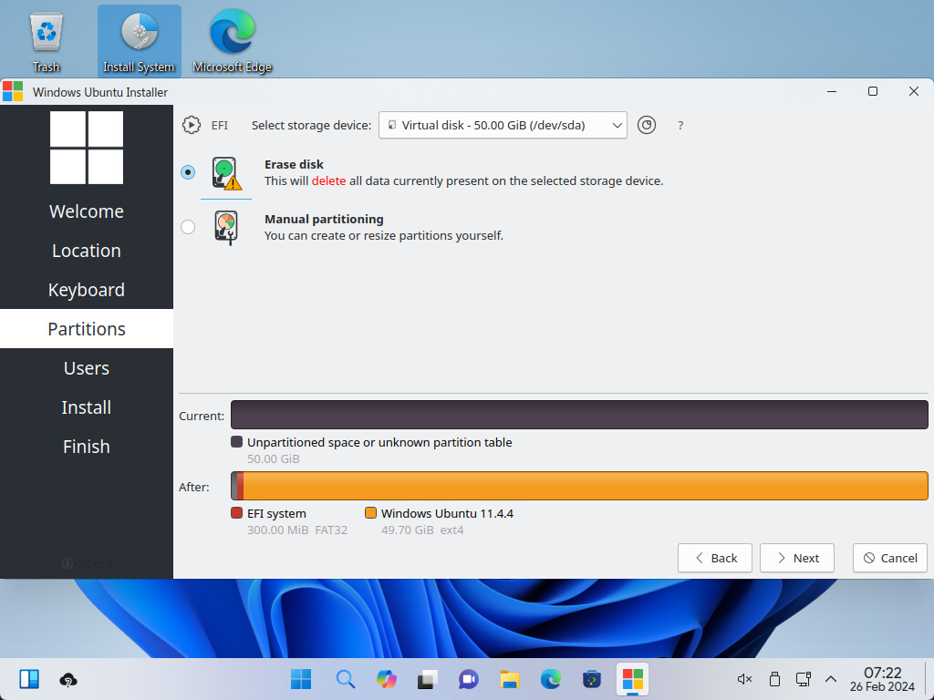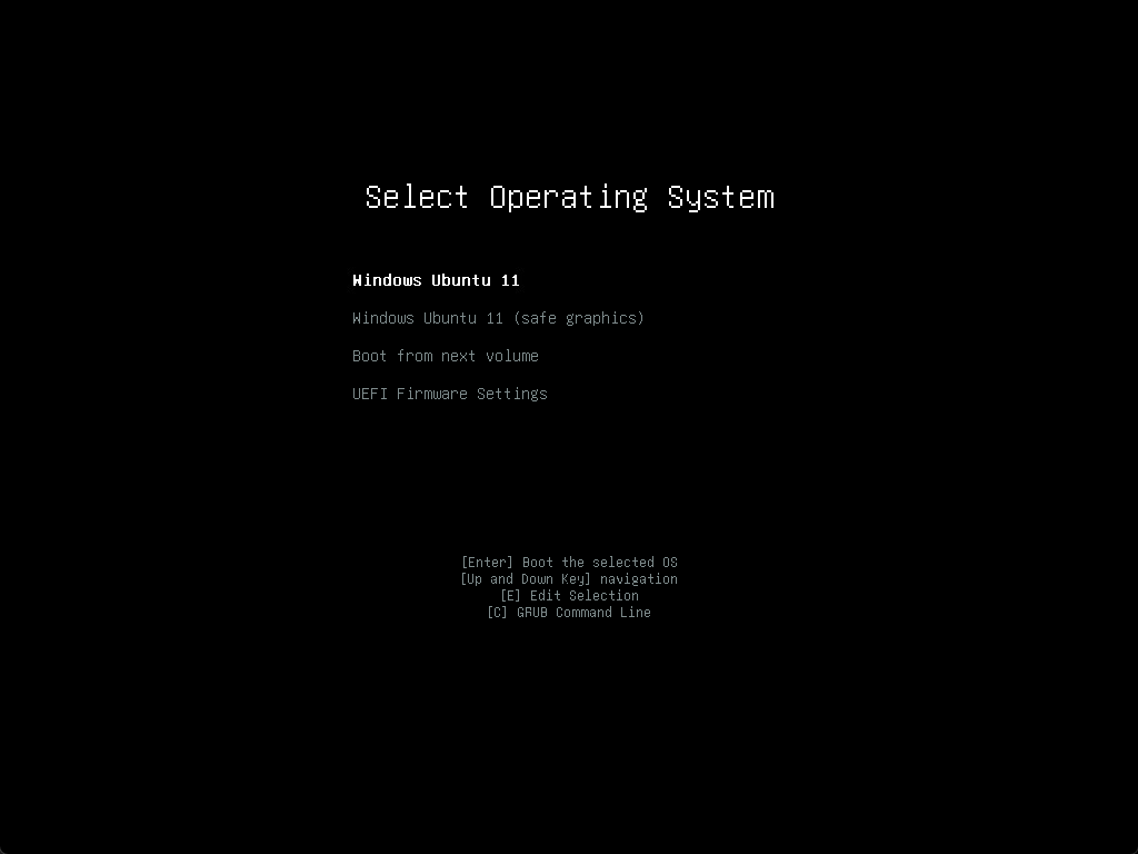 The installation steps are exactly the same. Below are some screenshots. The first one is booting into Windows 11 Cinnamon.