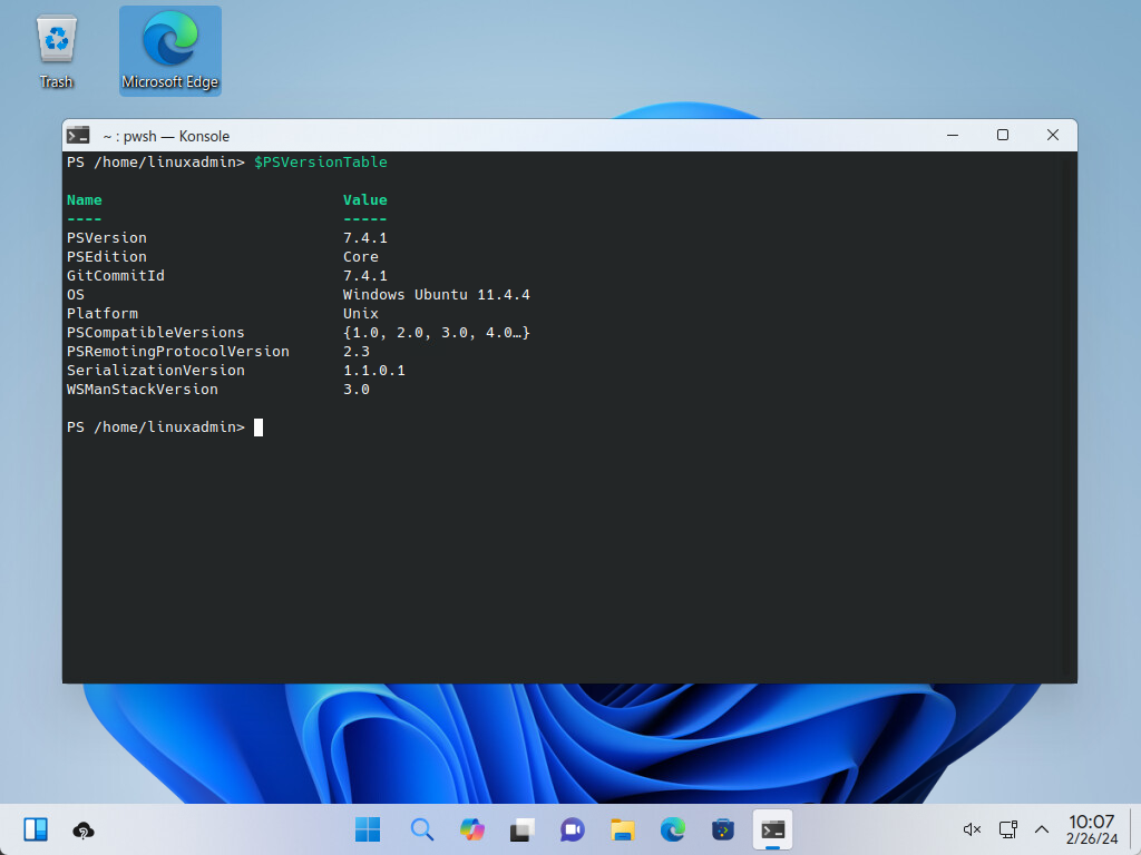 Below is what I got after launching the PowerShell terminal command line and viewing the PSVersionTable $.