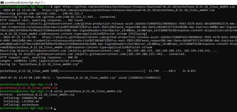 از صفحه انتشارات PocketBase دیدن کنید و آخرین نسخه را انتخاب کنید. بیلد مناسب را برای نمونه خود انتخاب کنید – یا linux_amd64 یا linux_arm64. URL دانلود را کپی کنید و از wget برای دانلود فایل استفاده کنید.