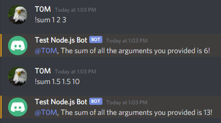 در این مرحله، ربات Discord خود را با اجرای دستور sum توسعه داده اید.