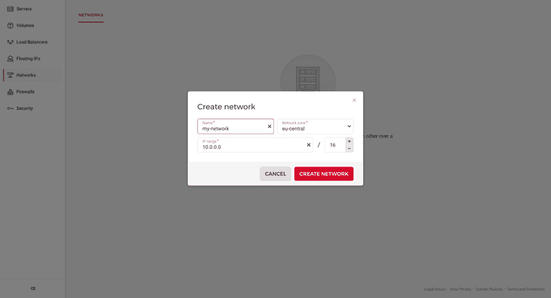 شبکه خصوصی خود را تحت پروژه Hetzner Cloud خود در منطقه ای که می خواهید استفاده کنید ایجاد کنید.