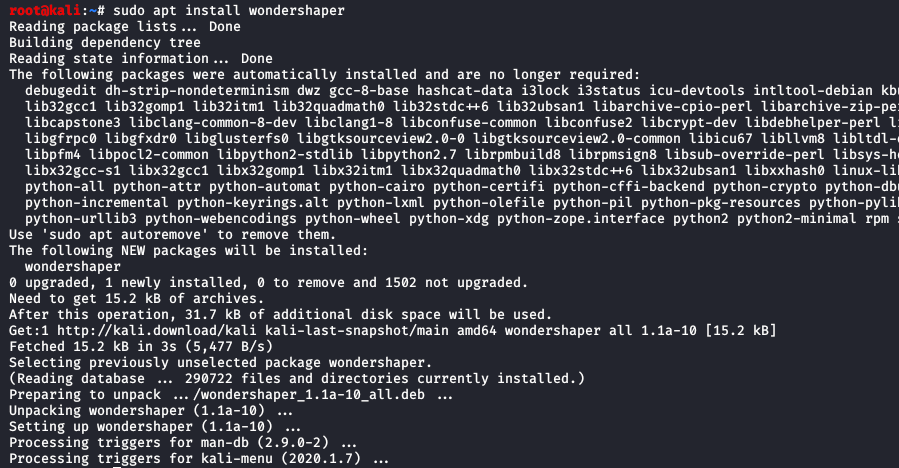 مرحله 4- اکنون می خواهیم دایرکتوری WonderShaper را با استفاده از زیر نصب کنیم