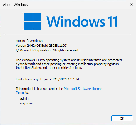 با دستور winver می توانیم اطلاعات زیر را ببینیم: