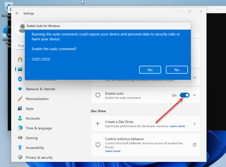 در قسمت Settings > System > For developers، گزینه Enable sudo را خواهید دید. کلید را روشن کنید و در صفحه تنظیمات تأیید کنید.