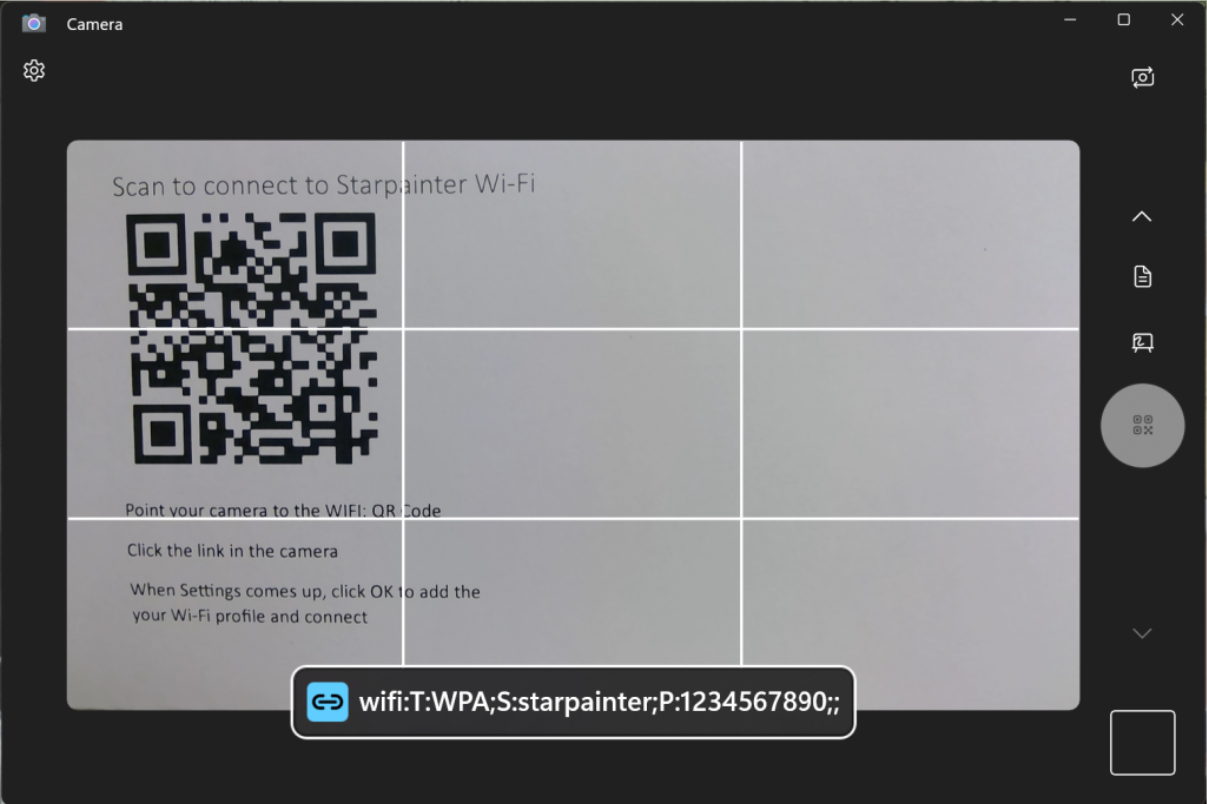 برنامه دوربین اکنون اتصالات سریع شبکه Wi-Fi را با اسکن یک کد QR حاوی جزئیات شبکه فعال می کند. این ویژگی در بیلد 25977 برای کانال قناری معرفی شد. افزودن پروفایل های جدید Wi-Fi را مستقیماً از ویژگی های Wi Fi تسهیل می کند. هم از شبکه های استاندارد وای فای و هم از هات اسپات های موبایل پشتیبانی می کند و کاربران حتی می توانند کدهای QR وای فای خود را برای اشتراک گذاری دسترسی به شبکه با دیگران ایجاد کنند.