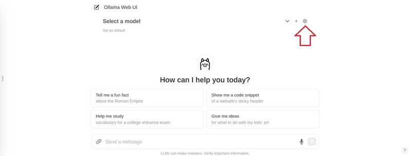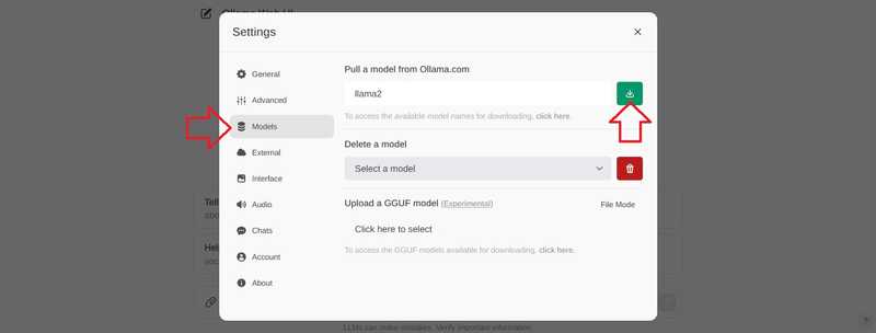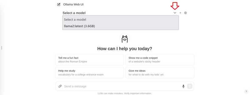 پس از دسترسی به رابط کاربری وب، باید اولین حساب کاربری را ایجاد کنید. این کاربر دارای حقوق مدیریت خواهد بود. برای شروع اولین چت خود، باید مدلی را انتخاب کنید. می توانید لیستی از مدل ها را در وب سایت رسمی اوللاما مرور کنید. در این مثال “llama2” را اضافه می کنیم.