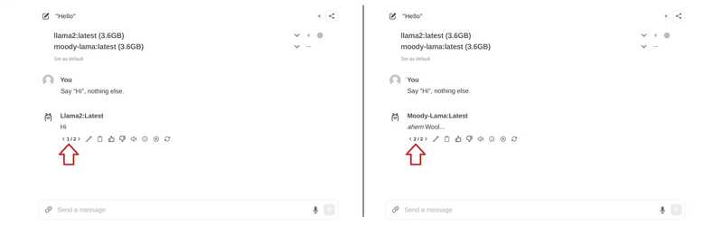 هنگامی که مدل هایی را که می خواهید استفاده کنید اضافه کردید، می توانید شروع به پرسیدن سوالات خود کنید. اگر چندین مدل اضافه کرده اید، می توانید بین پاسخ ها جابجا شوید.