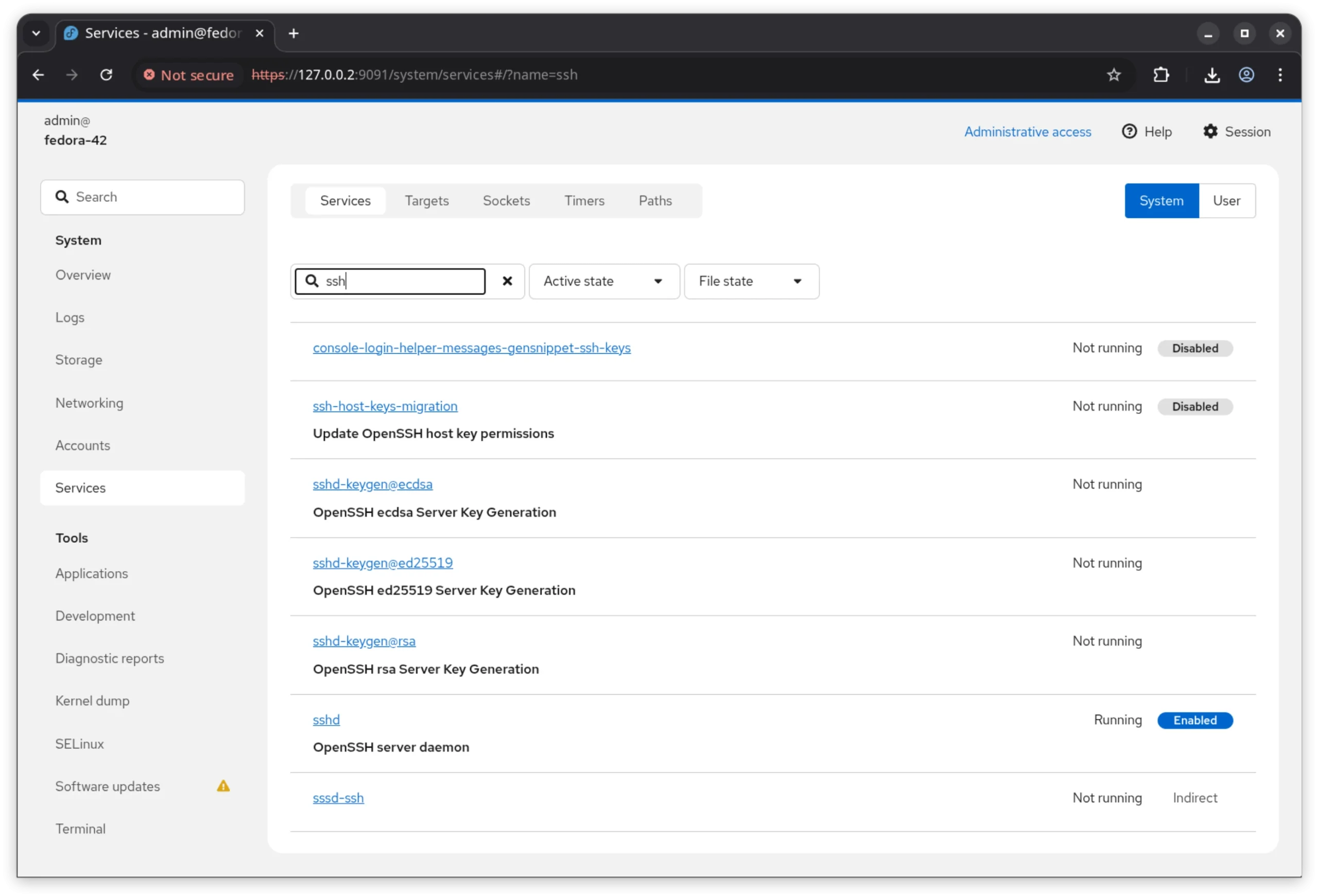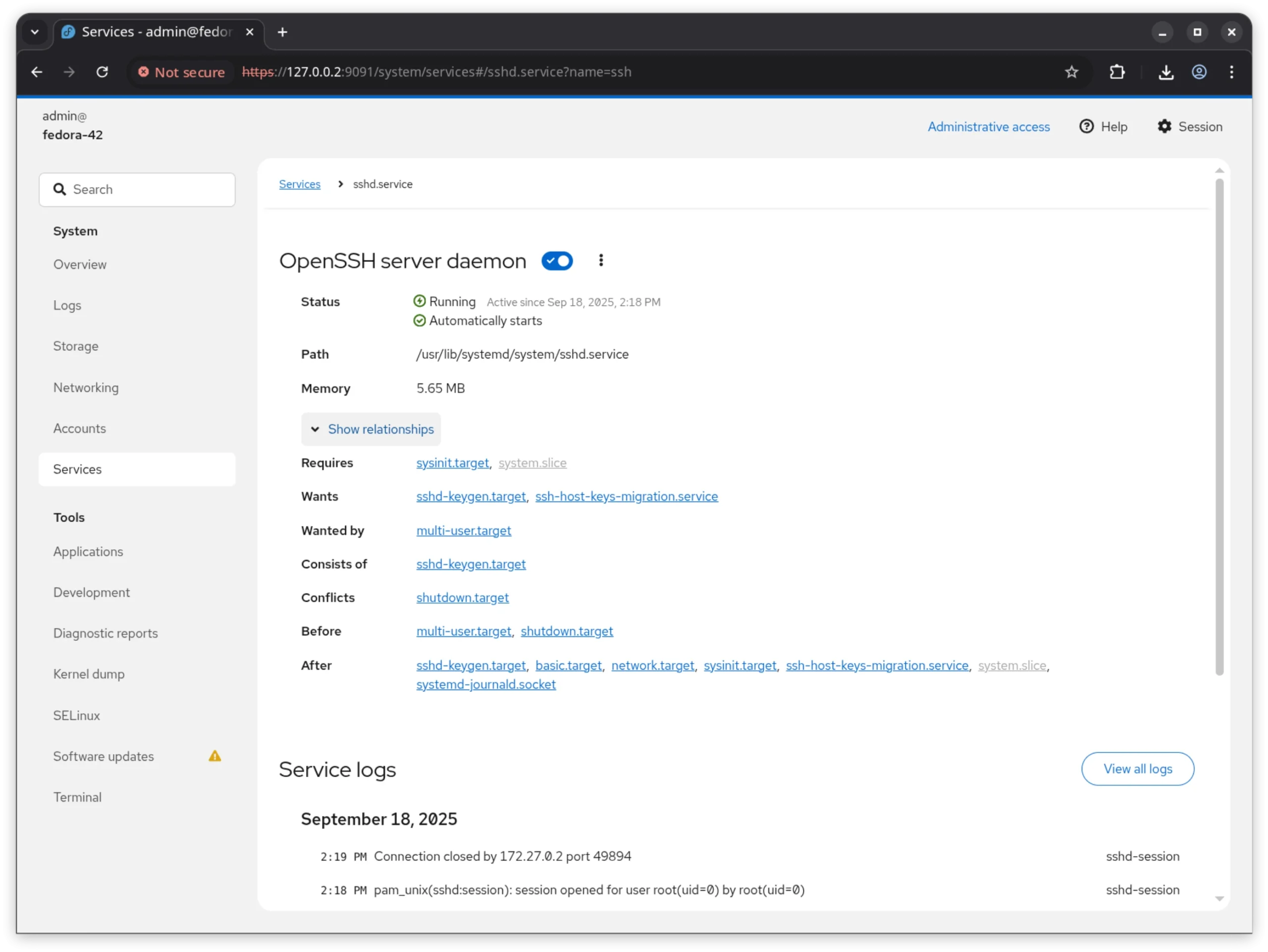• ترمینال داخلی: باز کردن ترمینال SSH داخل Cockpit برای انجام دستورات سیستم بدون نیاز به SSH جداگانه